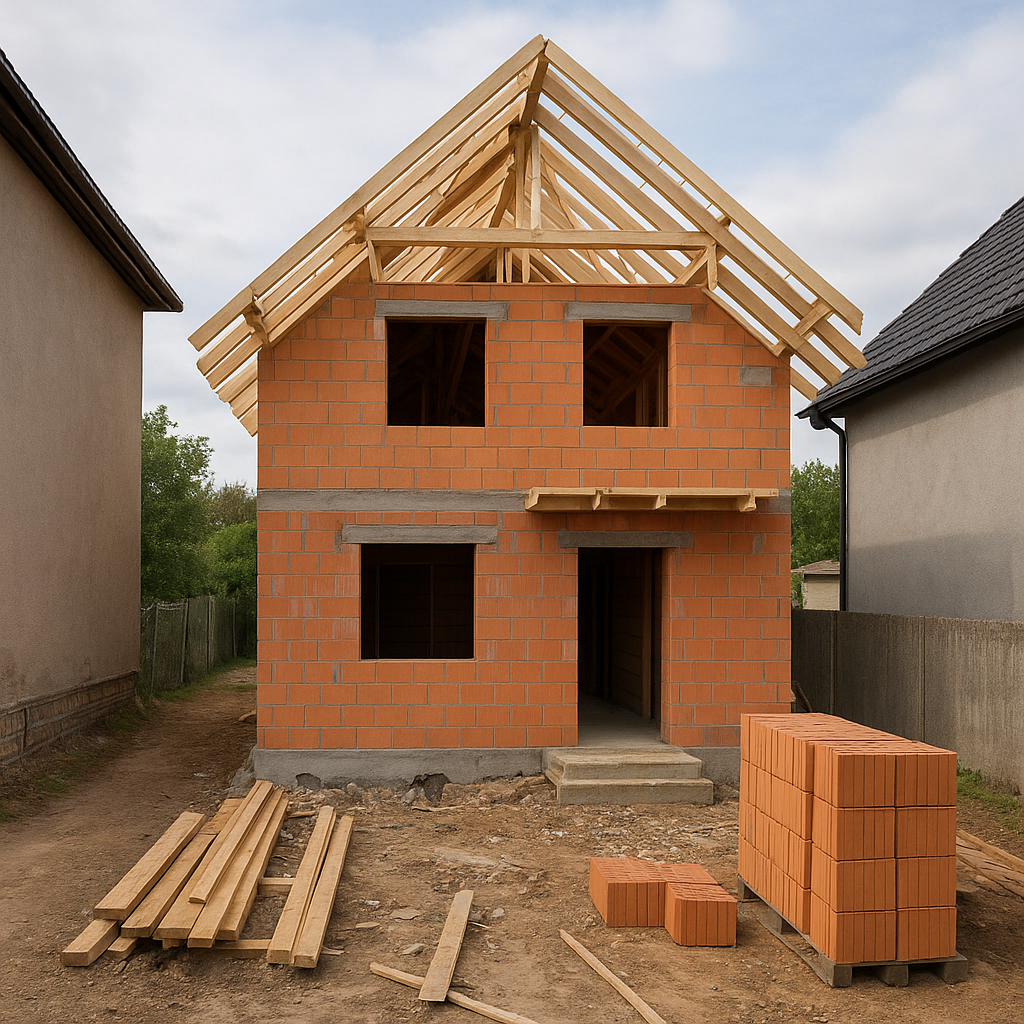 Wznoszenie ścian nośnych przy użyciu bloczków betonowych lub ceramicznych. Stropy mogą być monolityczne lub prefabrykowane – wybór zależy od dostępności miejsca na placu budowy i wymagań projektowych.